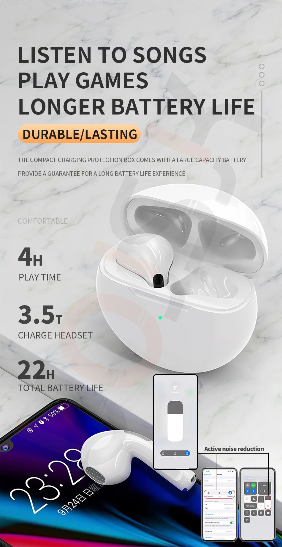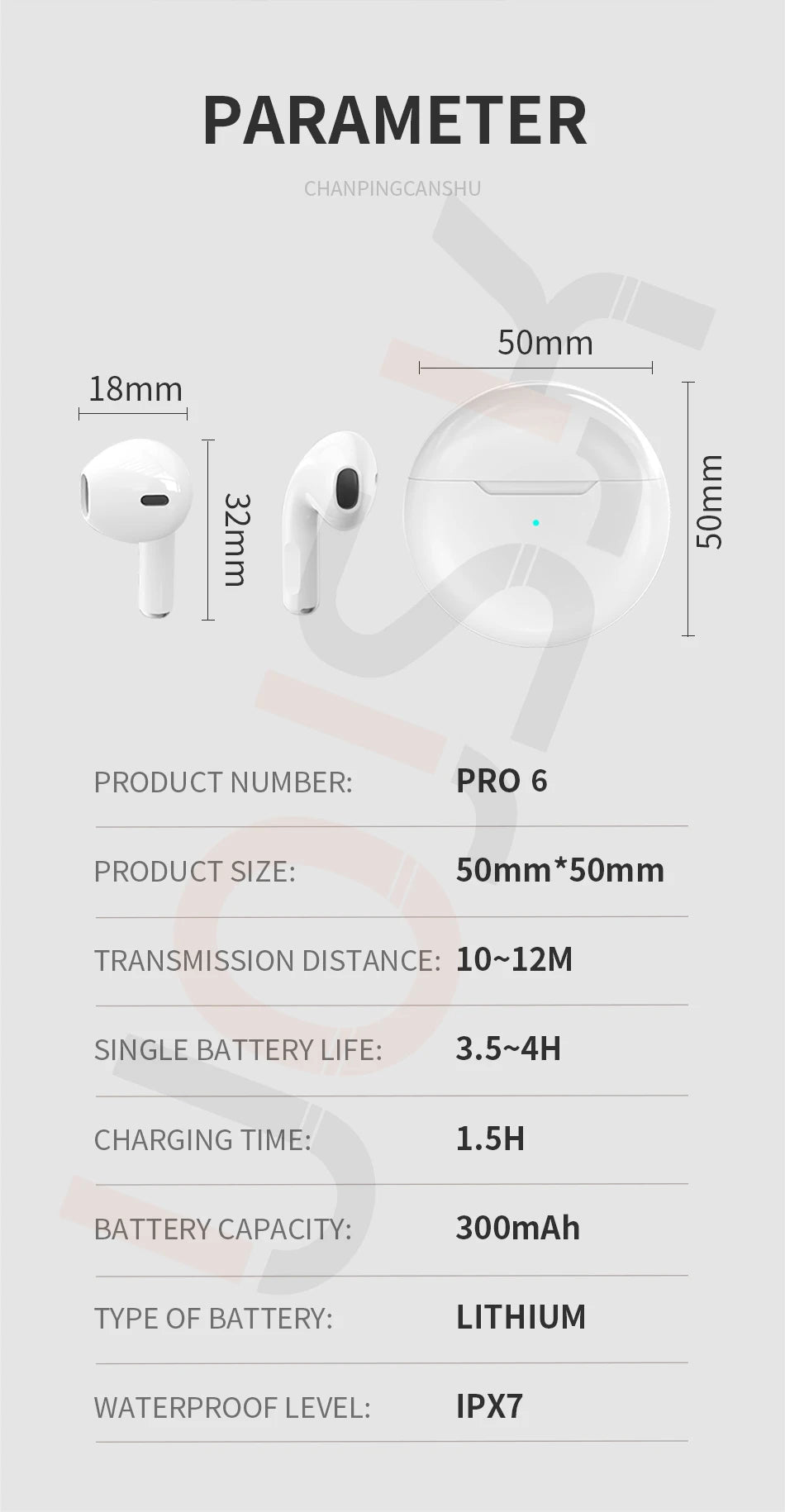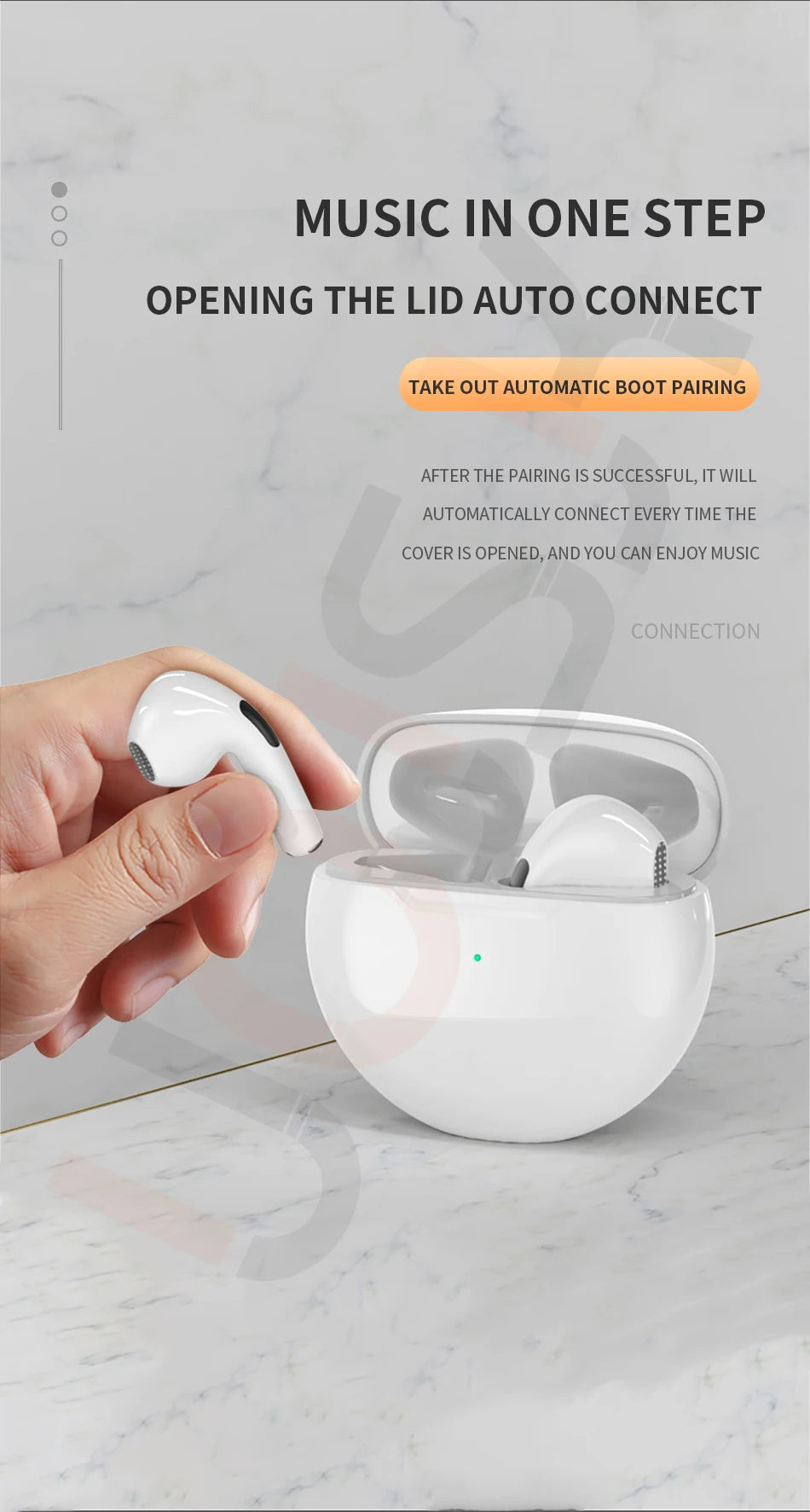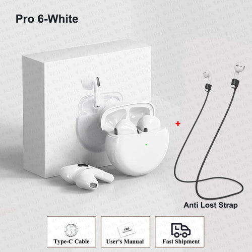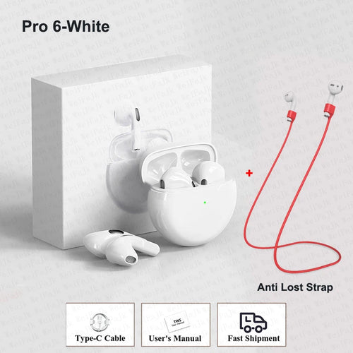 Pro 6 TWS Bluetooth Earbuds - Stereo Sound & Charging Case